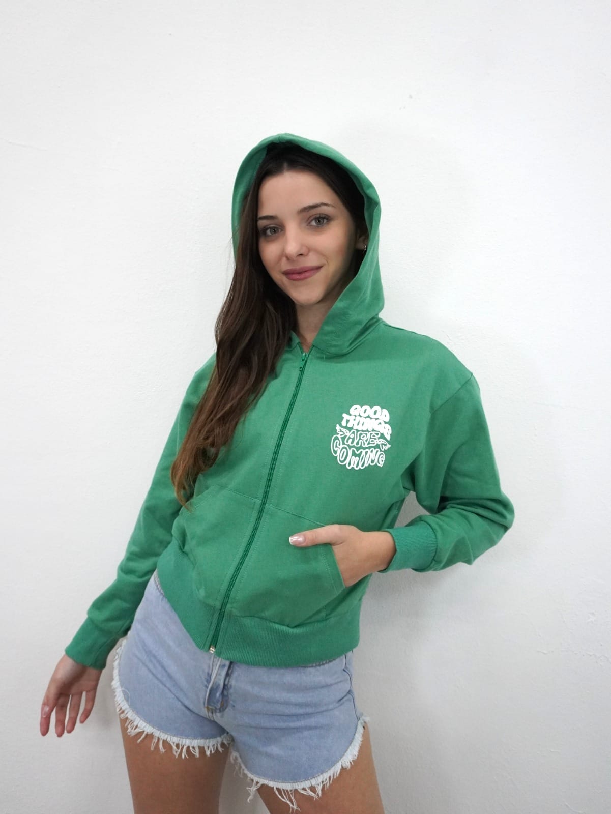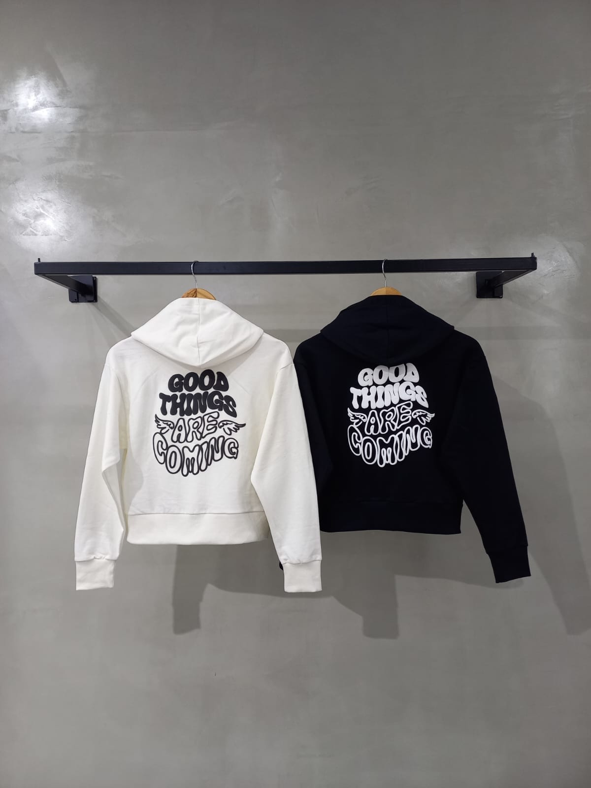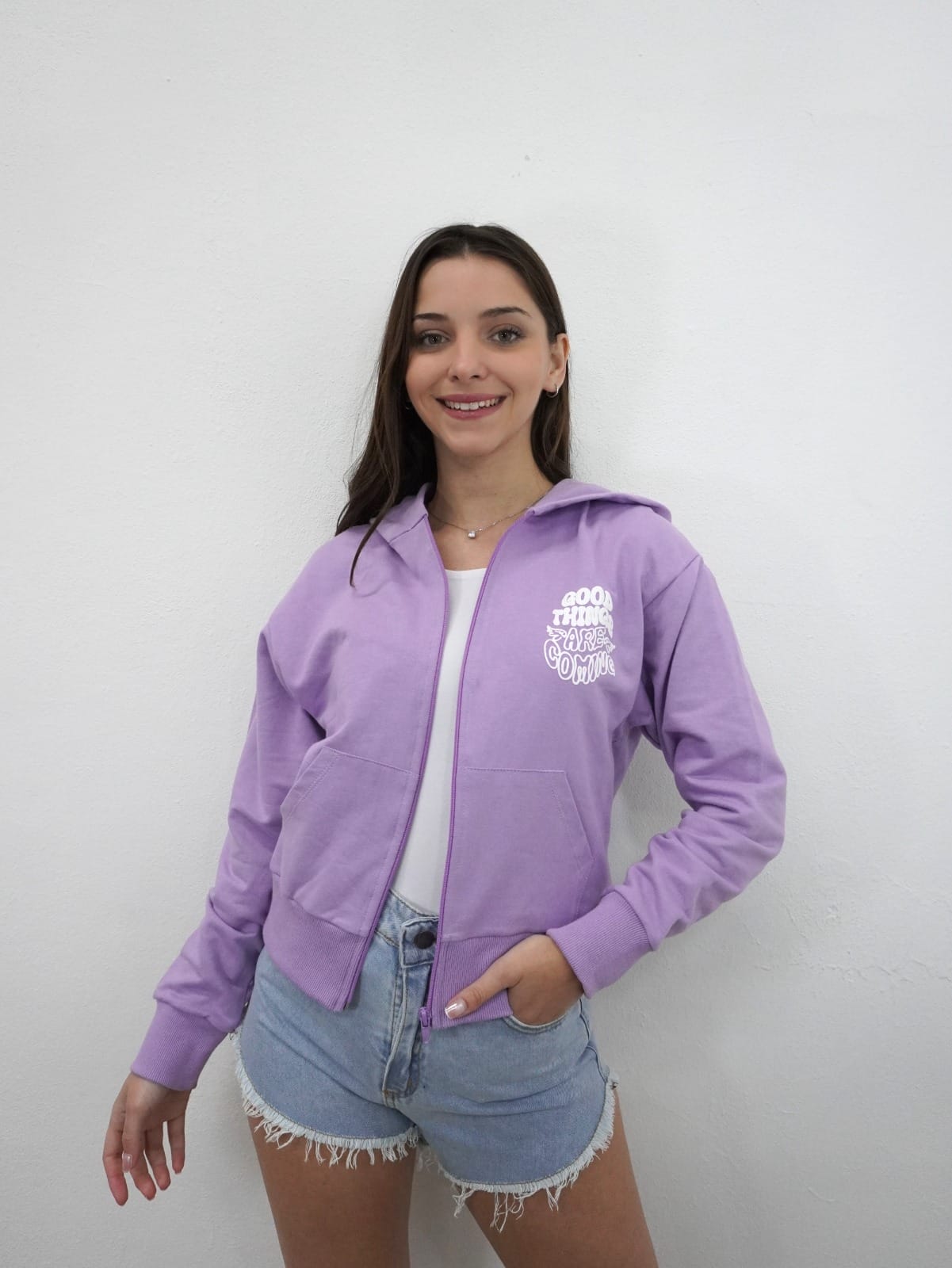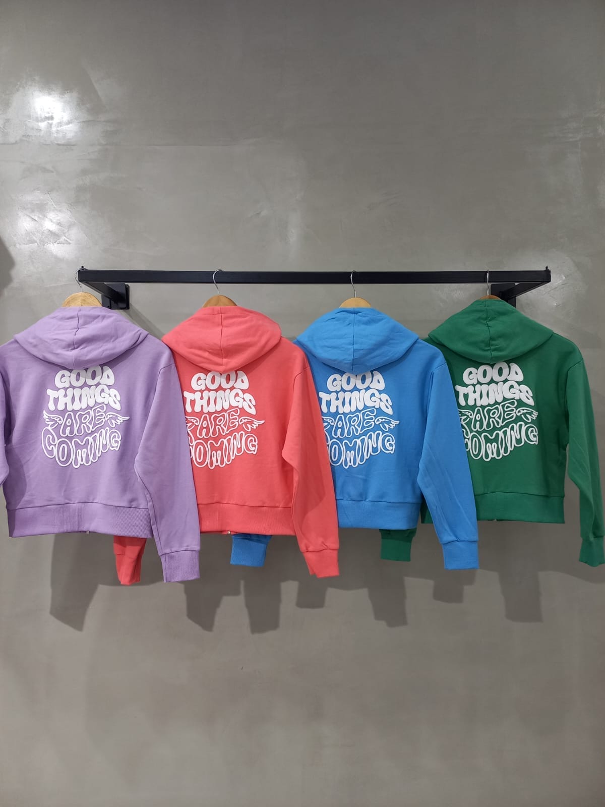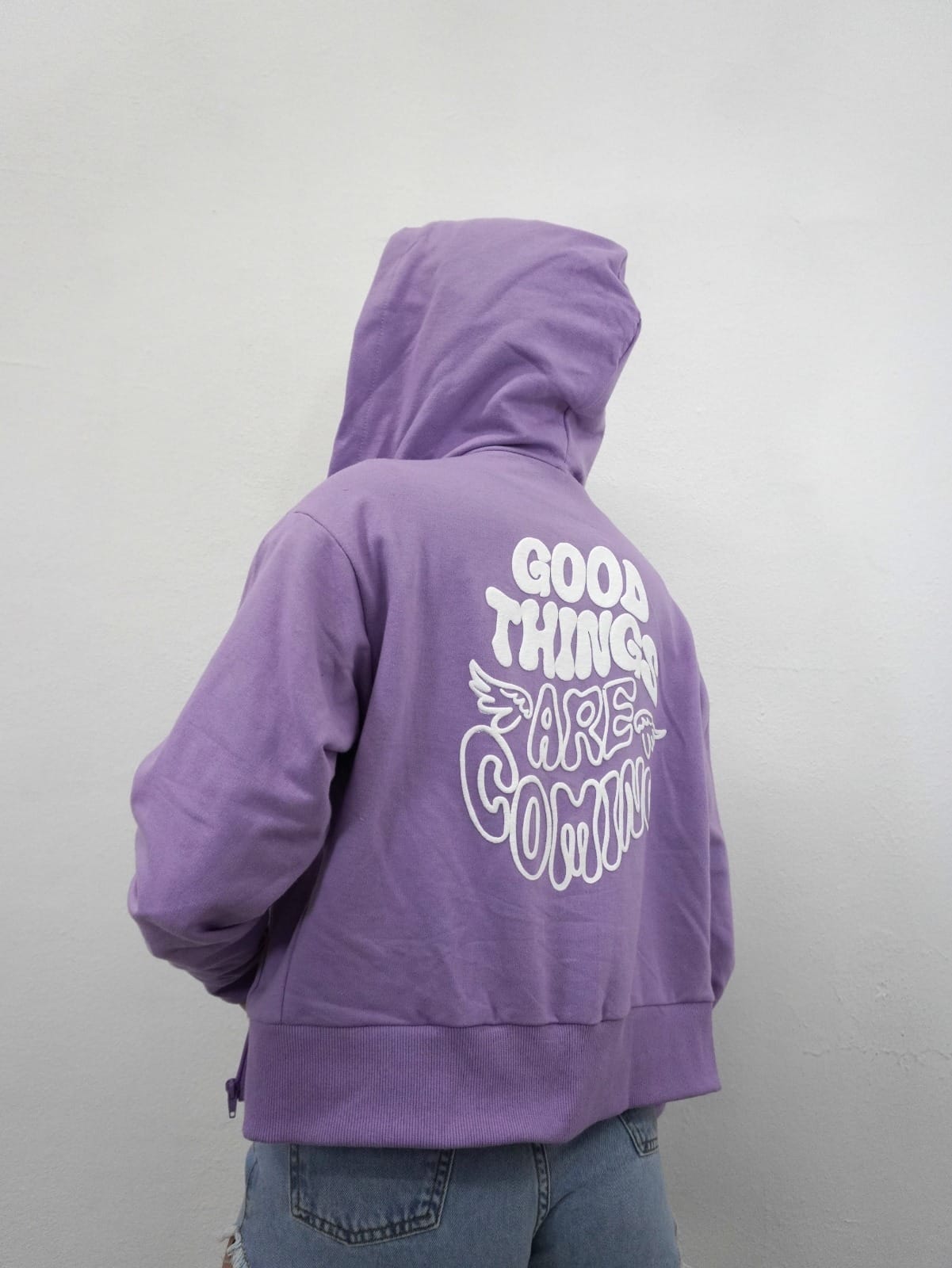 Campera Rustica Estampada GOOD THINGS ARE COMING Algodón 100% Talle : M, XL y 3XL Colores : Crema/Lila/Coral/Celeste/Verde Oscuro/Negro