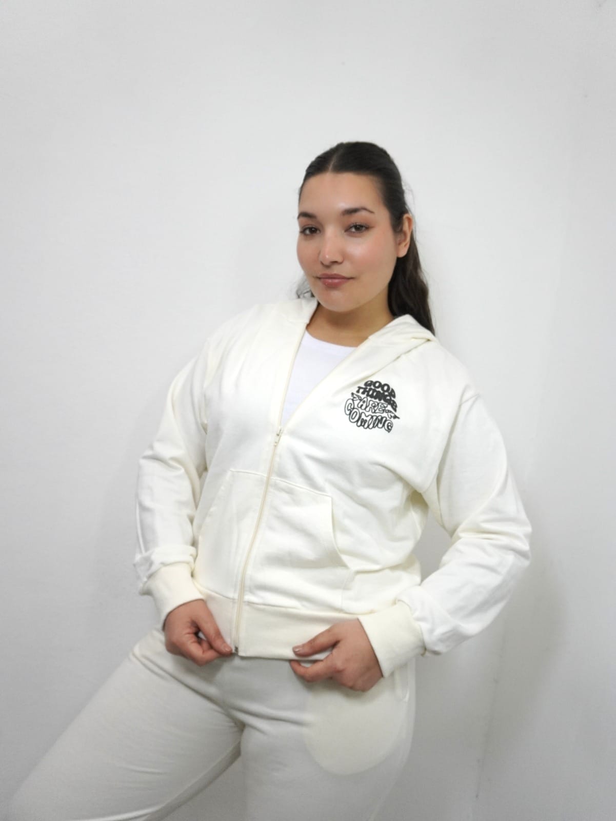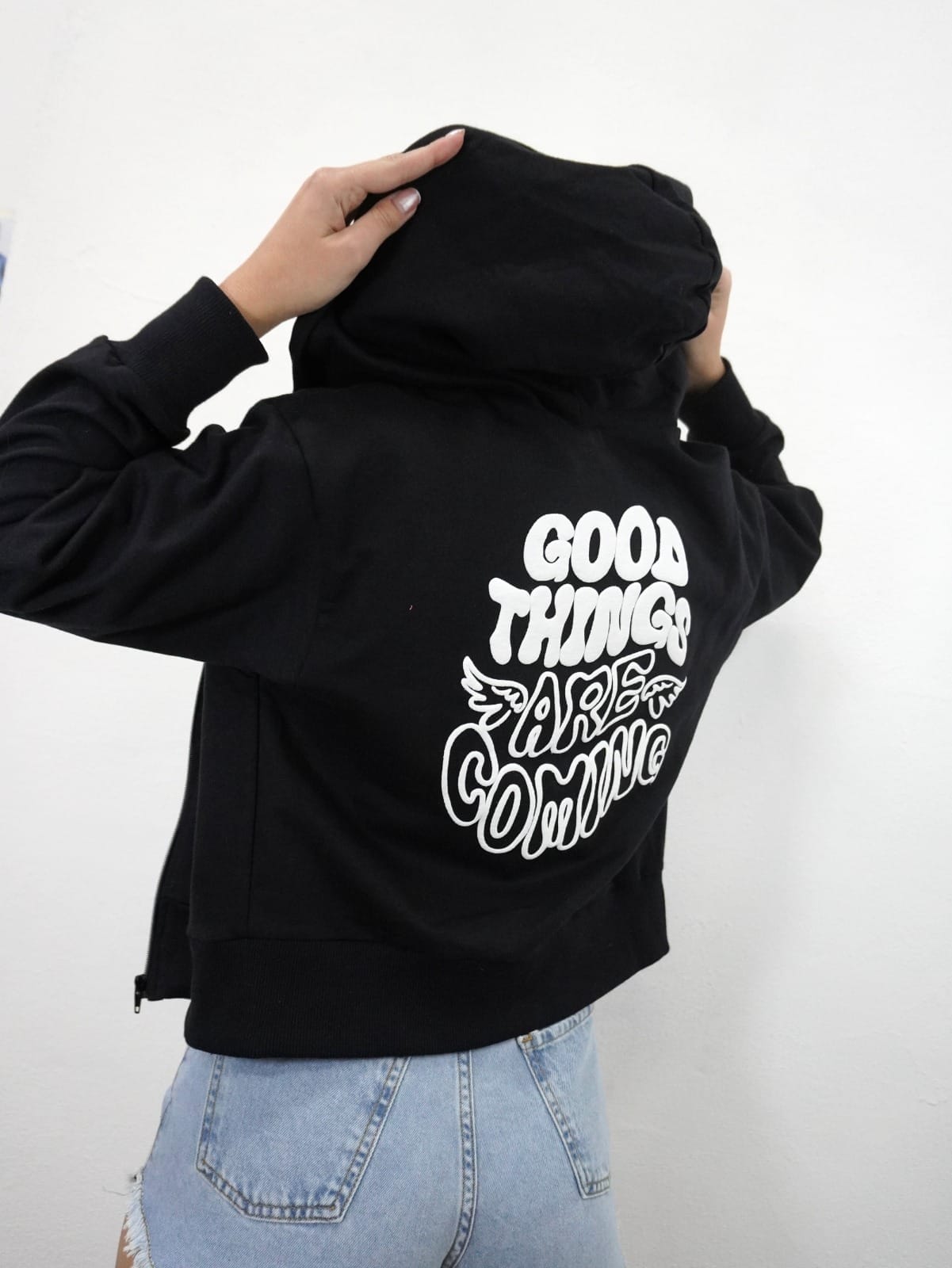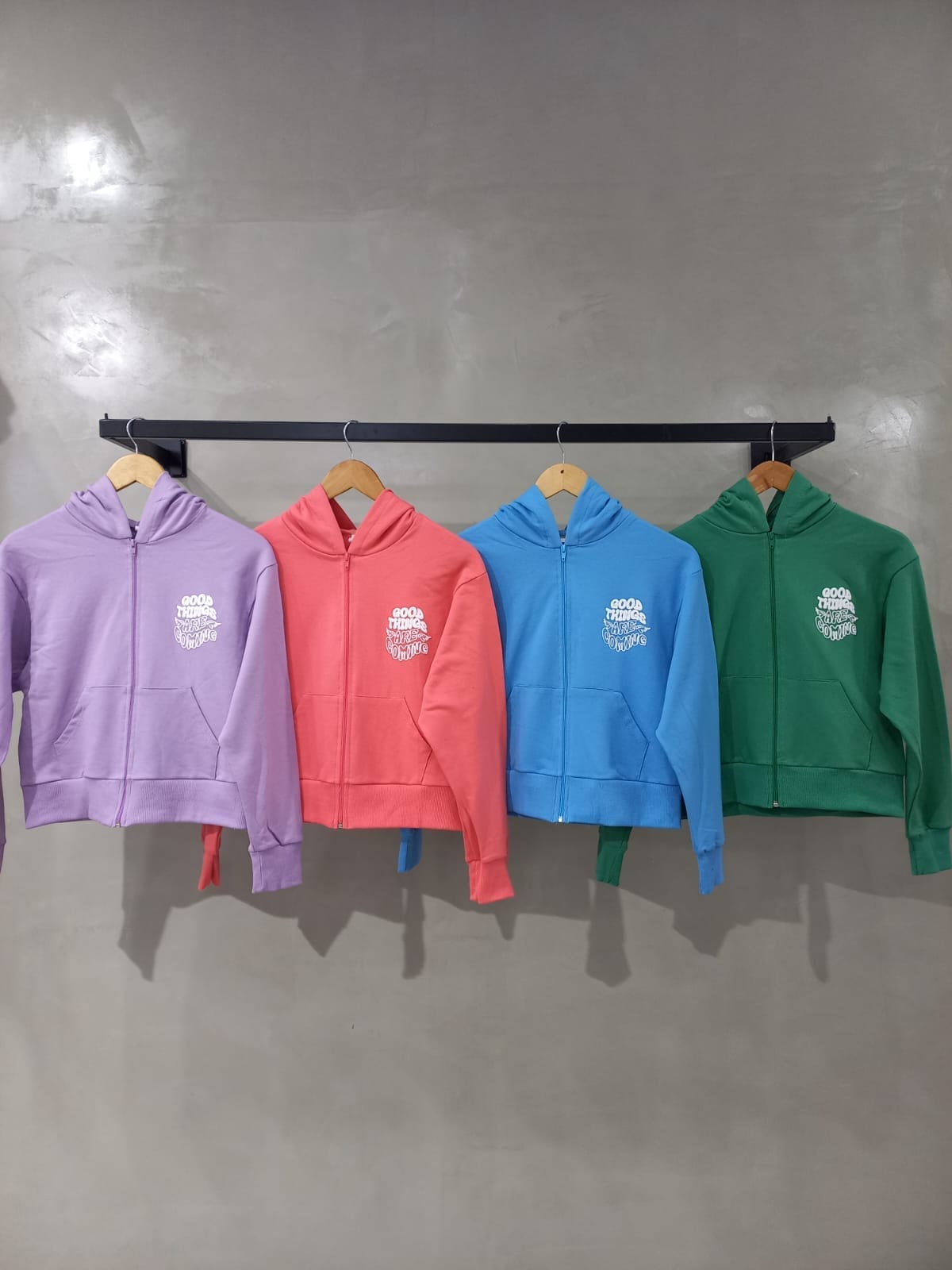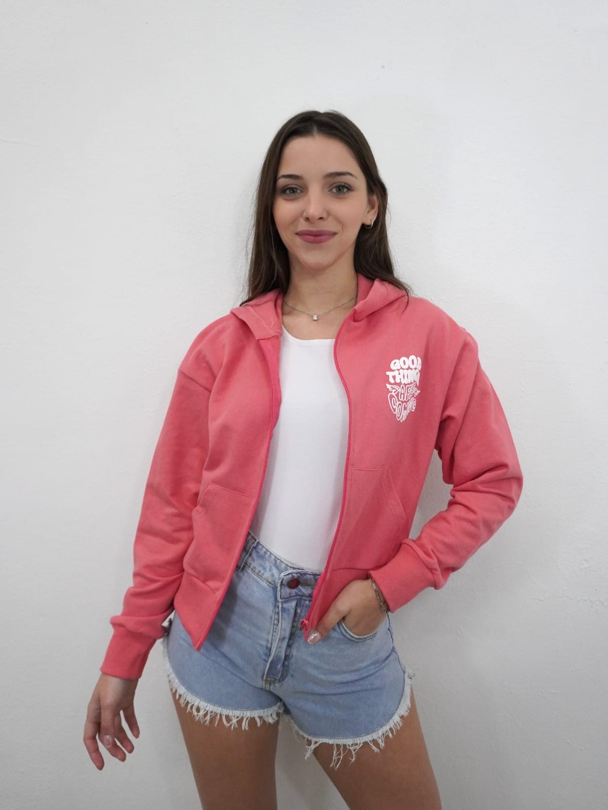 Campera Rustica Estampada GOOD THINGS ARE COMING Algodón 100% Talle : M, XL y 3XL Colores : Crema/Lila/Coral/Celeste/Verde Oscuro/Negro