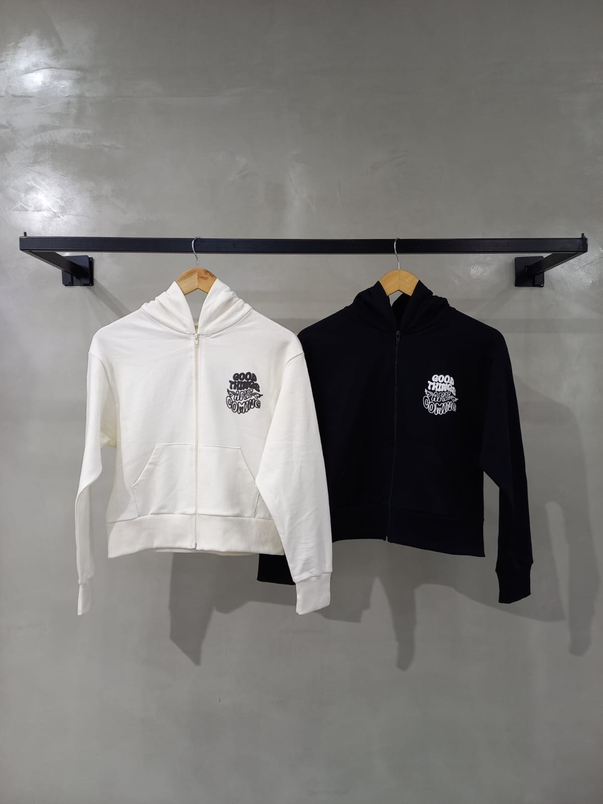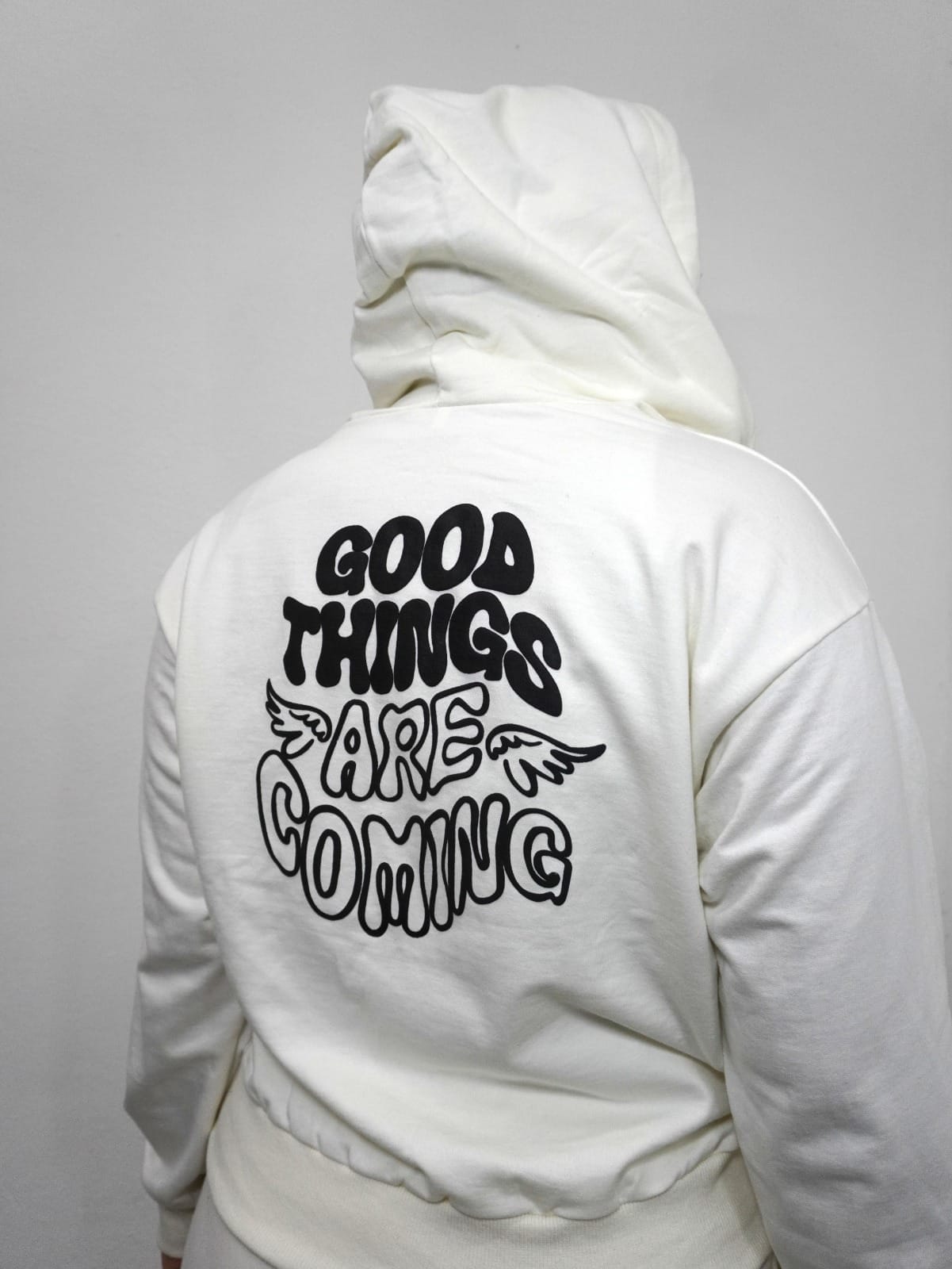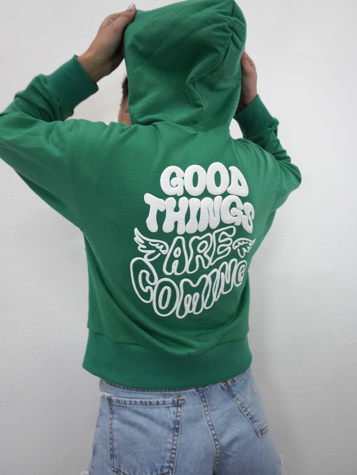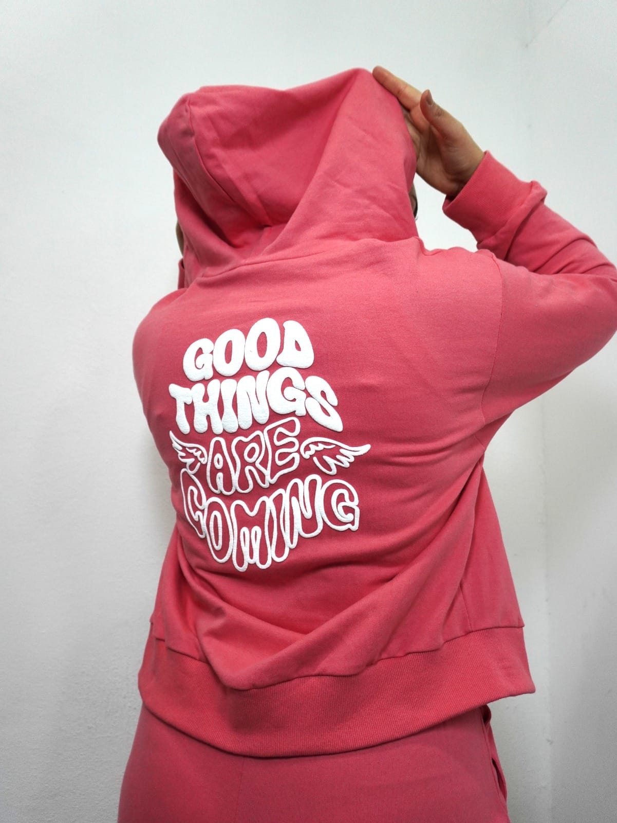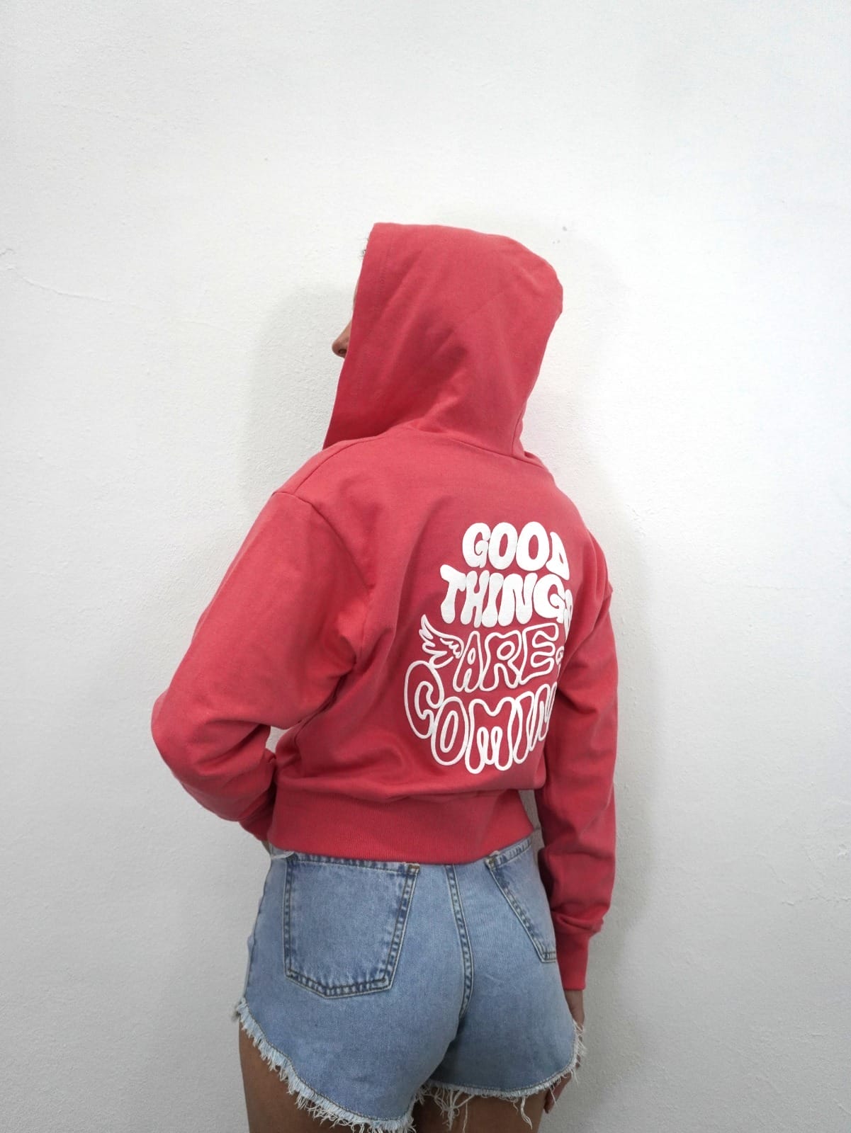 Campera Rustica Estampada GOOD THINGS ARE COMING Algodón 100% Talle : M, XL y 3XL Colores : Crema/Lila/Coral/Celeste/Verde Oscuro/Negro