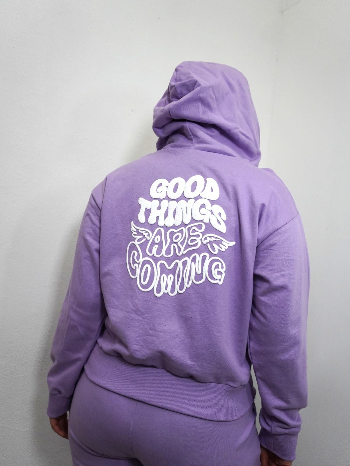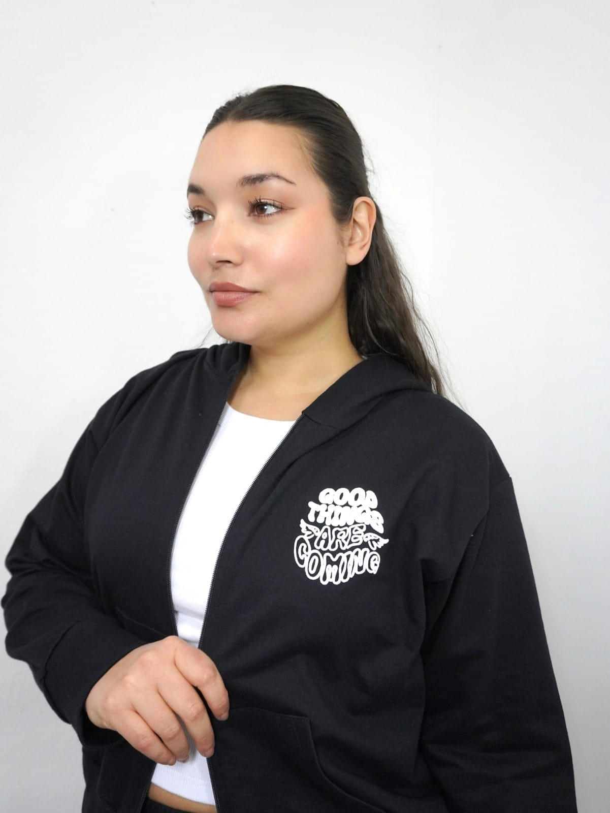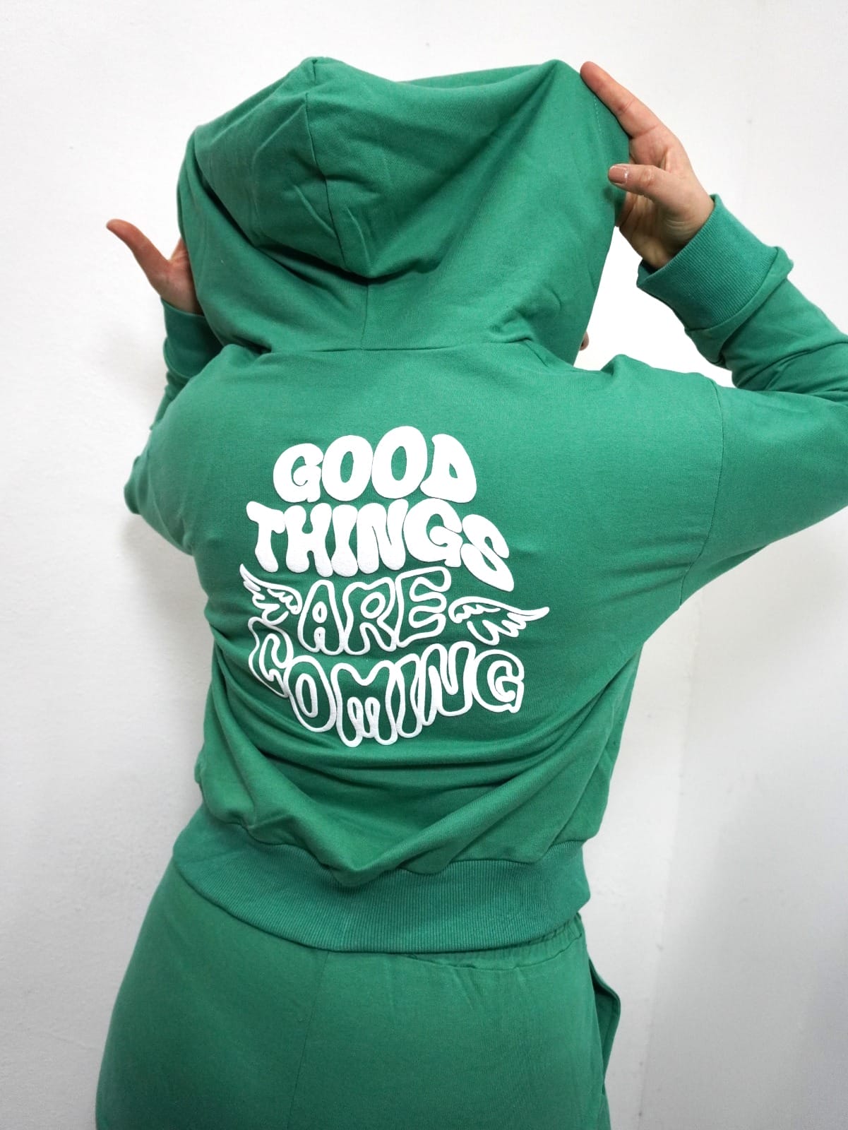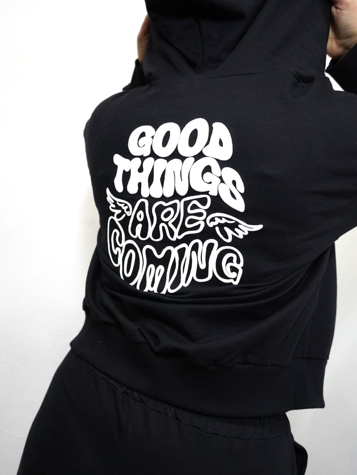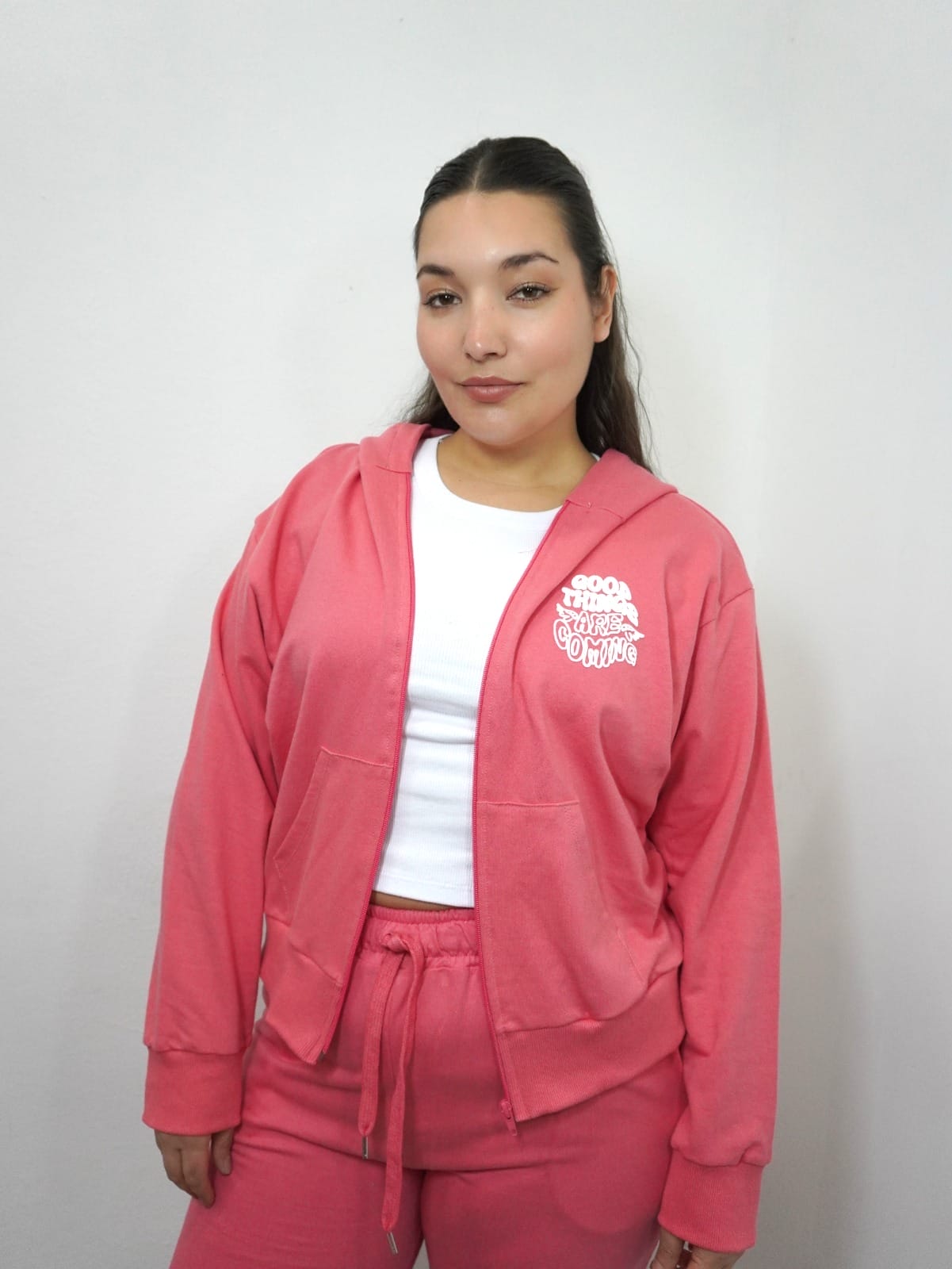 Campera Rustica Estampada GOOD THINGS ARE COMING Algodón 100% Talle : M, XL y 3XL Colores : Crema/Lila/Coral/Celeste/Verde Oscuro/Negro