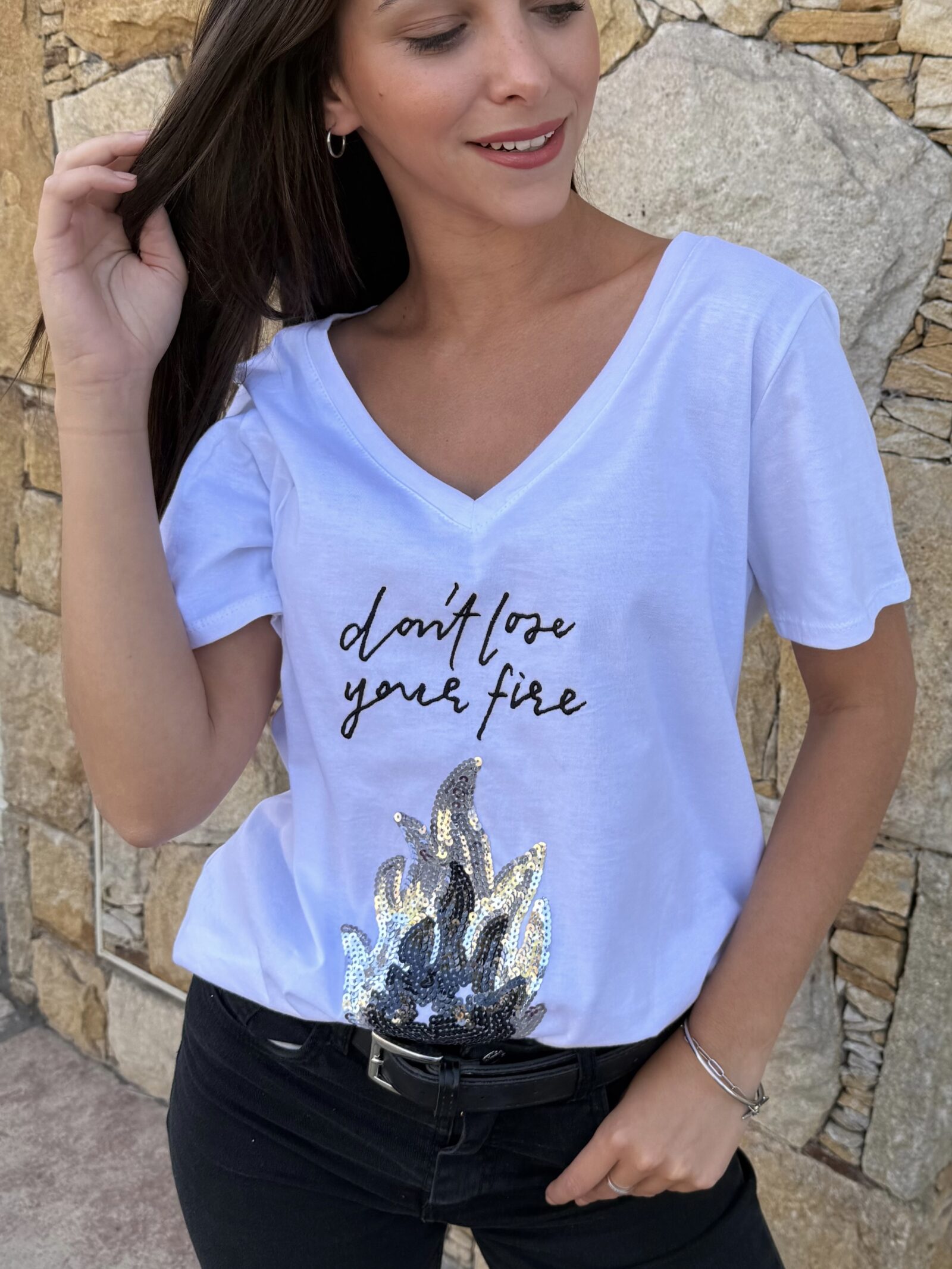 Remera Cuello V Lentejuelas ESTRELLAS HOMBROS Algodón 100% Talle : L, XXL y 4XL Colores : Blanco/Negro
