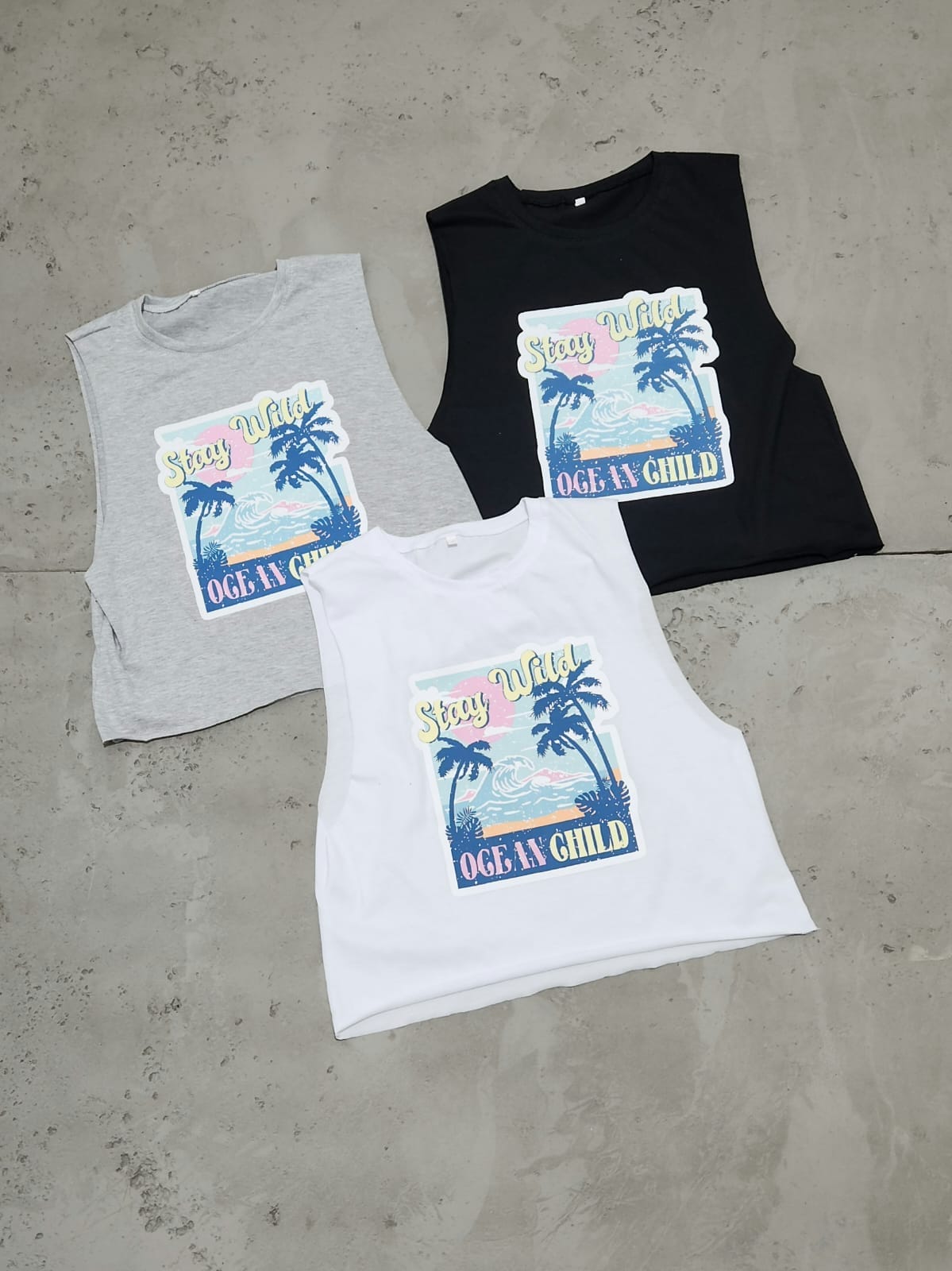 Sudadera Estampada Corta PLAYA STAY WILD OCEAN CHILD Algodón 100% Talle : S, L y XXL Colores : Blanco/Gris/Negro