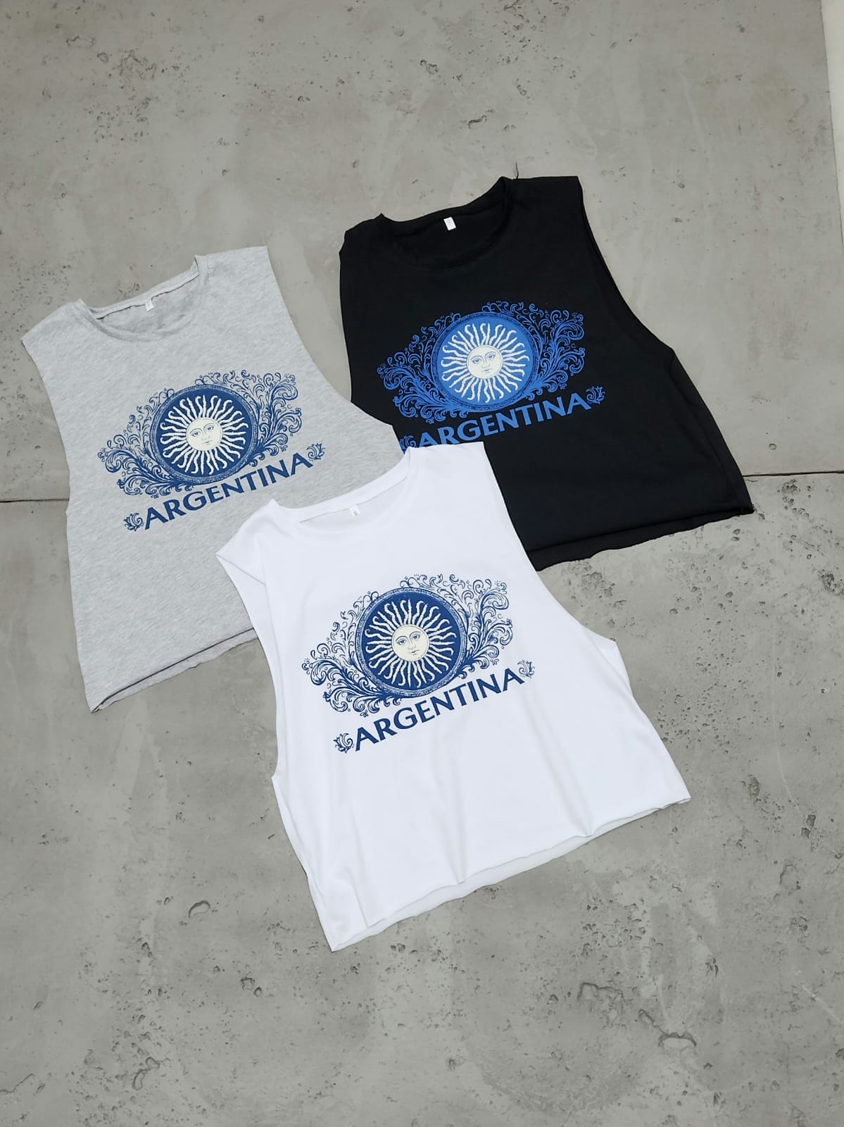 Sudadera Estampada Corta SOL ARGENTINA Algodón 100% Talle : S, L y XXL Colores : Blanco/Gris/Negro