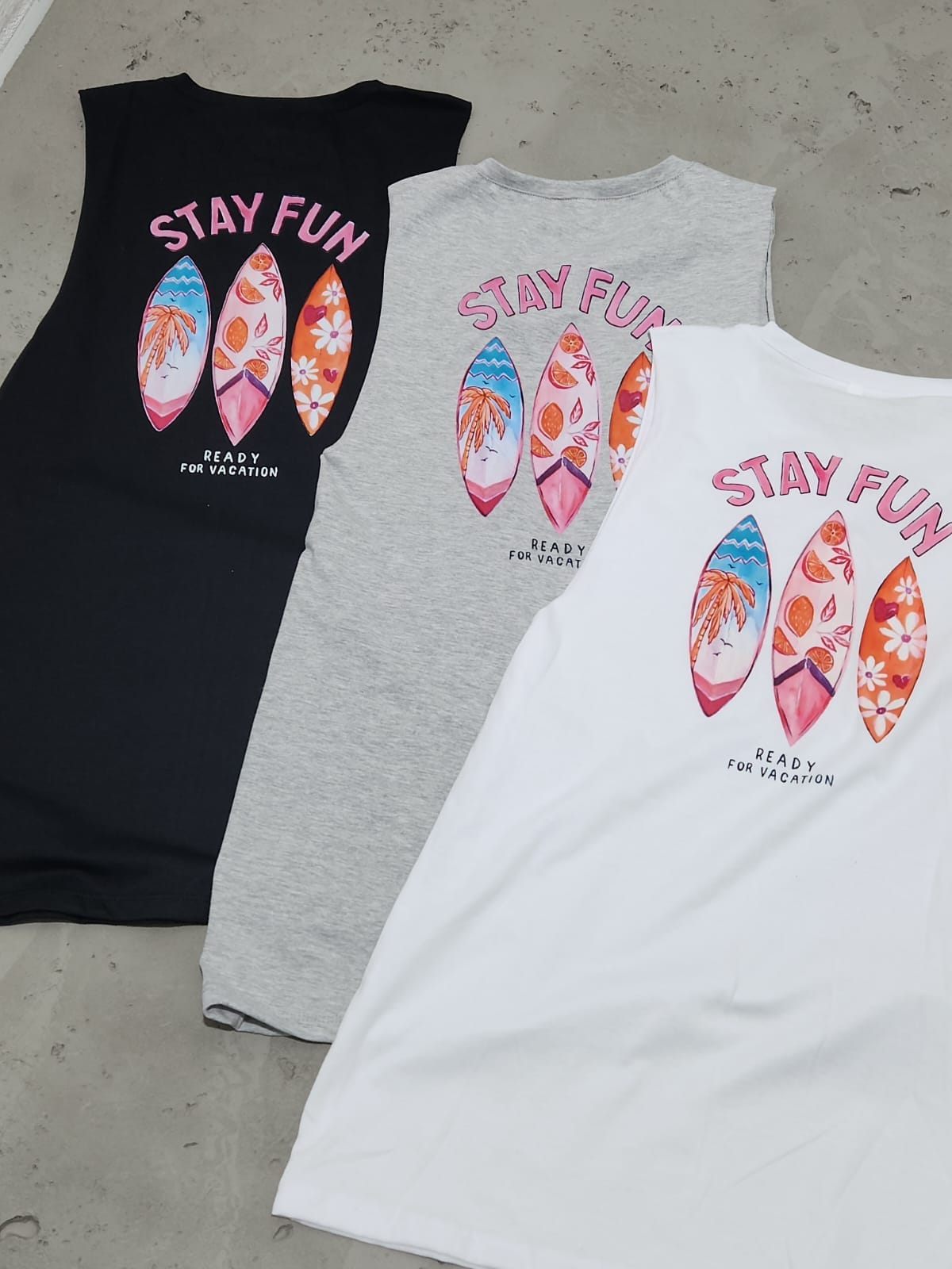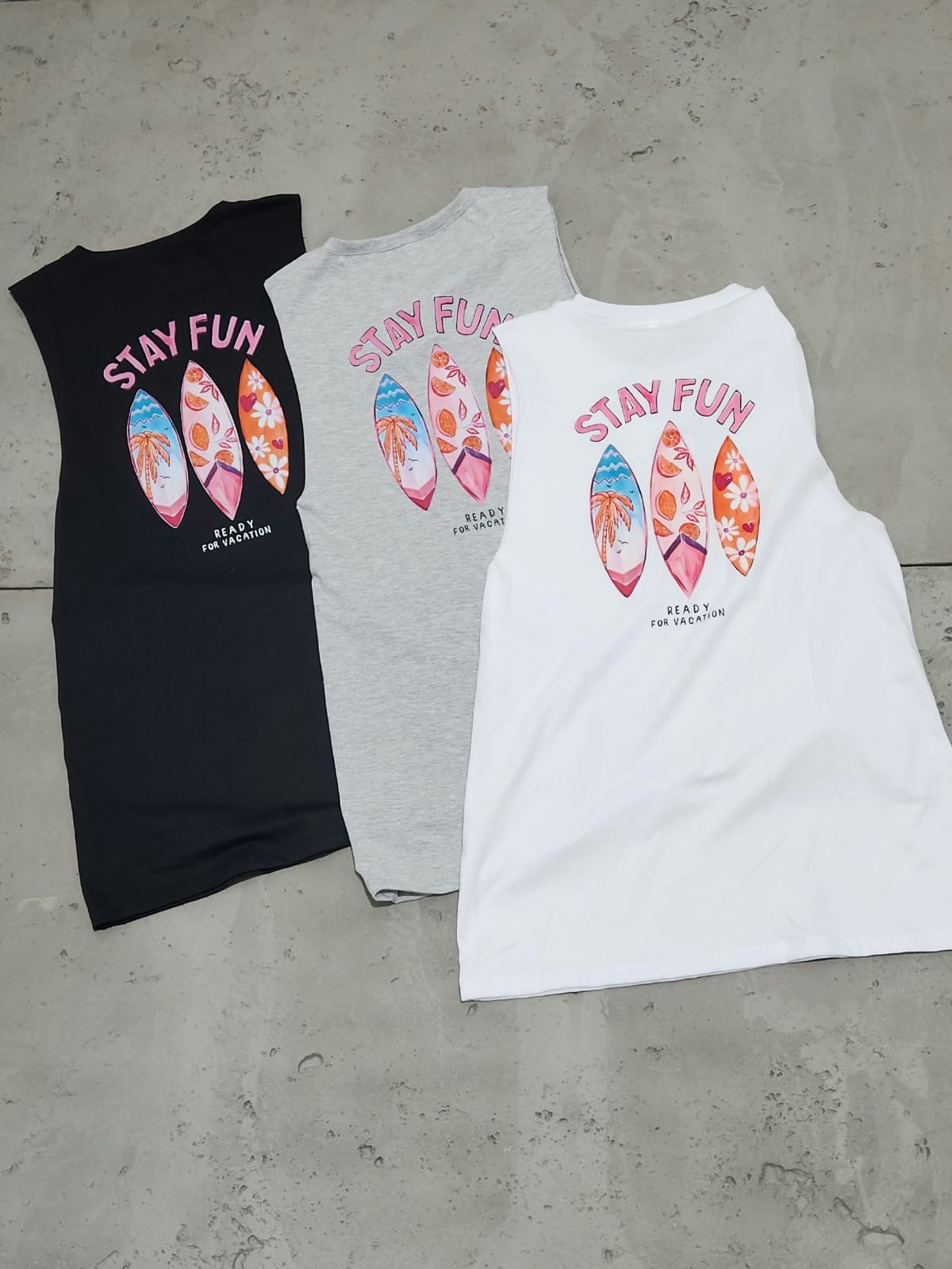 Sudadera Estampada Larga TABLAS STAY FUN Algodón 100% Talle : S, L y XXL Colores : Blanco/Gris/Negro